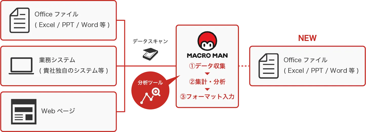 情報抽出からのレポオート作成に6時間かけていたけれど、マクロマンを使用したことで5分でレポート作成まで完了しました。他の業務へリソースを割くことが出来るようになり、助かりました。